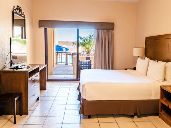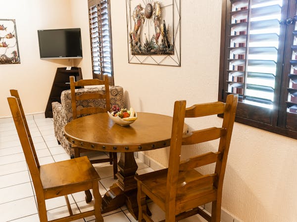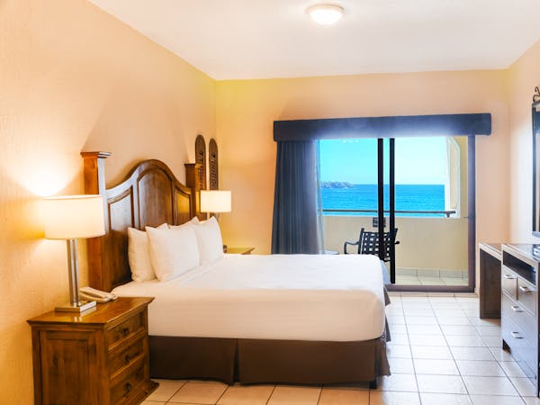 Habitación Una cama King size, cocineta integral, sofá cama, comedor, aire acondicionado, wifi, vista al mar.